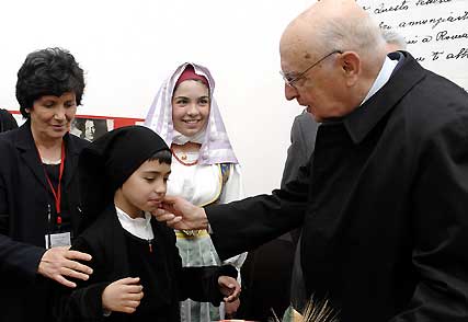 Il Presidente Giorgio Napolitano durante la visita alla Casa Museo di Antonio Gramsci, con la Presidente della Fondazione Augusta Niscali.