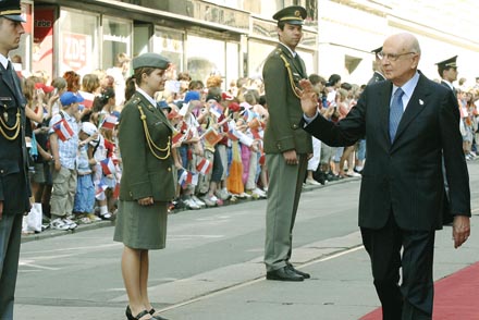 Il Presidente Giorgio Napolitano al suo arrivo in piazza Namesti Svobodi in occasione dei lavori del XIV Vertice dei Capi di Stato dei Paesi dell'Europa Centrale