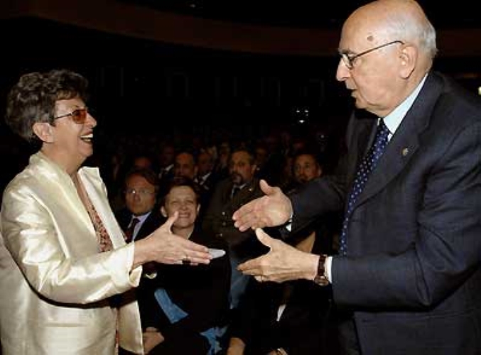 L'incontro del Presidente Giorgio Napolitano con la Signora Elisa Dorso, figlia di Guido, in occasione del Convegno commemorativo.
