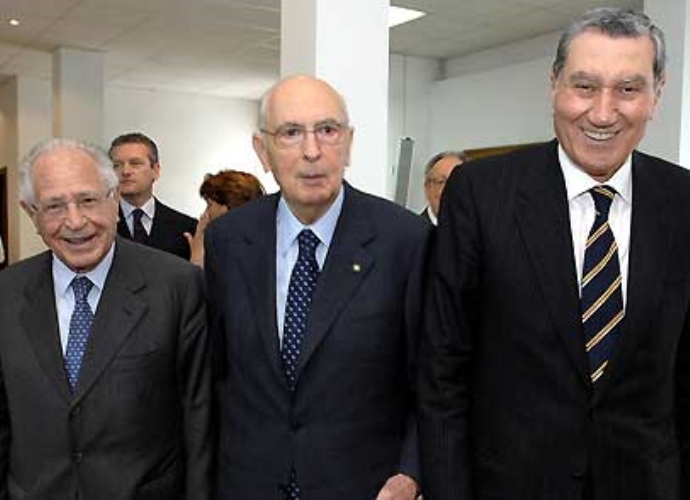 Il Presidente Giorgio Napolitano con Nicola Mancino, Vice Presidente del CSM ed il Sen.Antonio Maccanico, Presidente del Centro di Ricerca Guido Dorso", al termine del Convegno commemorativo di Guido Dorso.