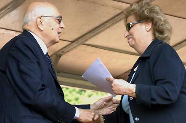 Il Presidente Giorgio Napolitano con Maria Falcone durante la cerimonia in ricordo delle vittime della mafia al Giardino della Memoria