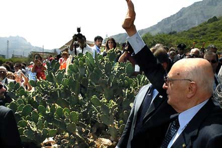 Il Presidente Giorgio Napolitano ai Giardini della Memoria, al termine del suo intervento