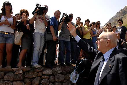 Il Presidente Giorgio Napolitano ai Giardini della Memoria al termine del suo intervento