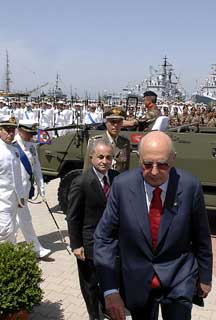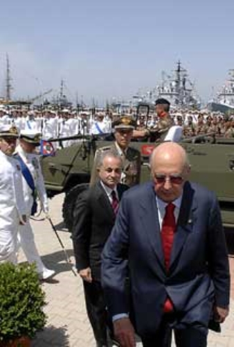 Il Presidente Giorgio Napolitano al suo arrivo in Tribuna d'Onore per la celebrazione della Festa della Marina