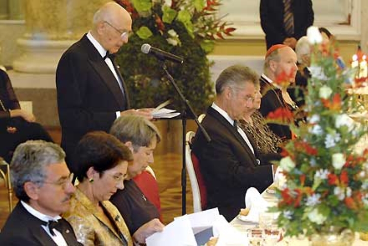 Il Presidente Giorgio Napolitano durante il suo intervento in occasione del pranzo di Stato