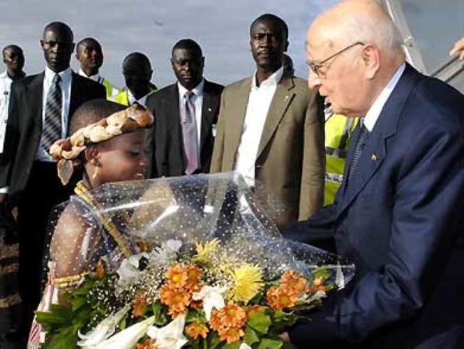 Il Presidente Giorgio Napolitano al suo arrivo nella capitale del Ghana.