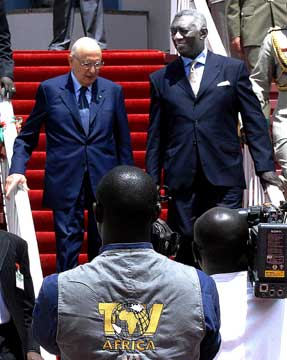 Il Presidente Giorgio Napolitano con il Presidente della Repubblica del Ghana, John Agyekum Kufuor, al termine dell'incontro al Palazzo Presidenziale