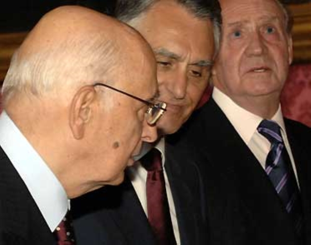 Il Presidente Giorgio Napolitano con il Presidente della Repubblica del Portogallo Cavaco Silva e S.M. il Re Juan Carlos, durante i lavori del III COTEC Europa.