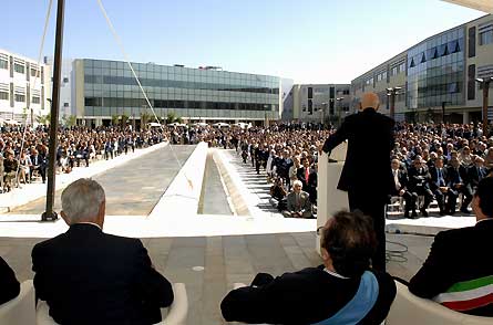 Il Presidente Giorgio Napolitano, rivolge il suo indirizzo di saluto agli operatori del Polo della Qualità nella Piazza della Citta della Moda di Marcianise