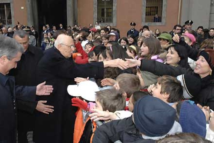 Il Presidente Giorgio Napolitano salutato all'arrivo in Prefettura