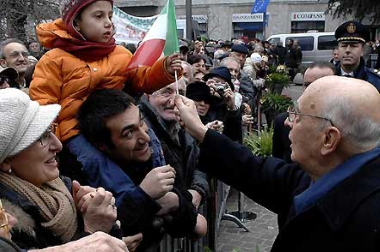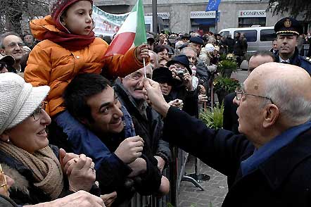 Il Presidente Giorgio Napolitano tra la folla che lo ha atteso a Sesto San Giovanni in occasione della visita a Villa Mylius