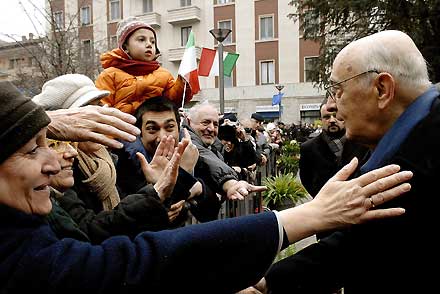 Il Presidente Giorgio Napolitano tra la gente di Sesto San Giovanni in occasione della visita all'ISEC