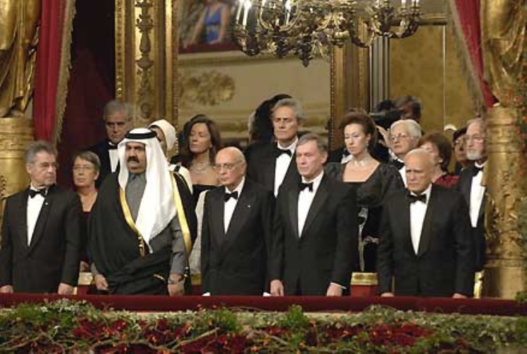 Il Presidente Giorgio Napolitano con i Capi di Stati di Austria, Qatar, Germania e Grecia al Palco d'Onore della Scala durante l'esecuzione dell'Inno Nazionale