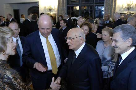 Il Presidente Giorgio Napolitano con Massimo D'Alema durante il ricevimento a Villa Firenze