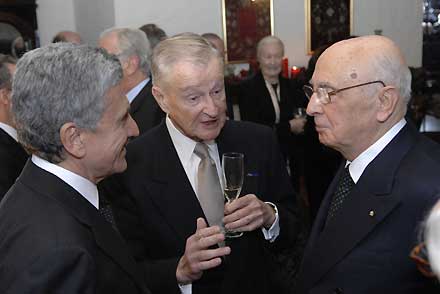 Il Presidente Giorgio Napolitano con il Ministro degli Affari Esteri, Massimo d'Alema durante il ricevimento a Villa Firenze