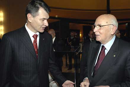 Il Presidente Giorgio Napolitano si intrattiene con l'Astronauta italiano che nei giorni scorsi ha portato a termine la missione nello Spazio.