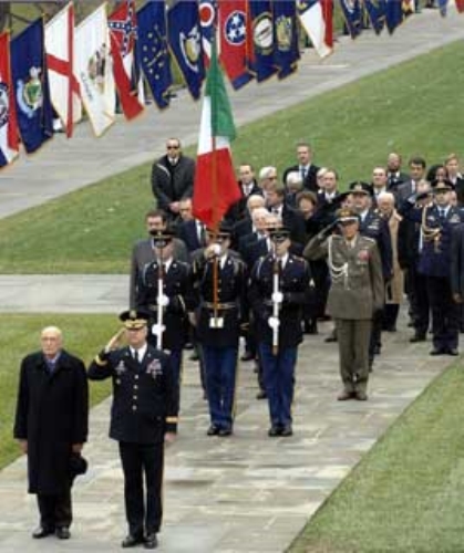 Un momento della cerimonia di deposizione di una corona al Milite Ignoto nel Cimitero di Arlington
