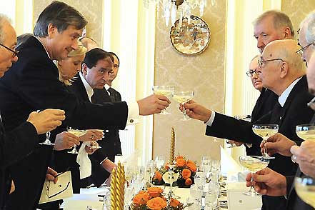 Brindisi del Presidente della Repubblica Italiana Giorgio Napolitano con il Presidente della Repubblica di Slovenia durante il pranzo