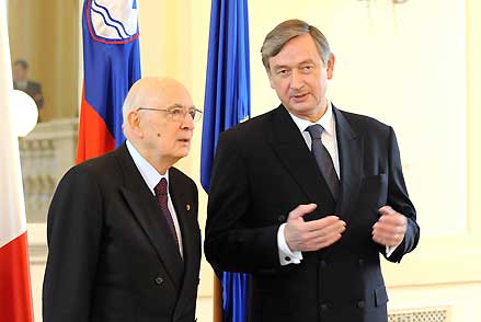 Il Presidente Giorgio Napolitano con il Presidente della Repubblica di Slovenia, Danilo Turk, poco prima dei colloqui