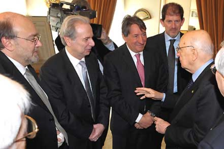 Il Presidente Giorgio Napolitano con una delegazione della Fondazione "STAVA 1985 Onlus", poco prima della colazione in Prefettura