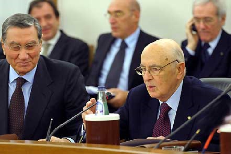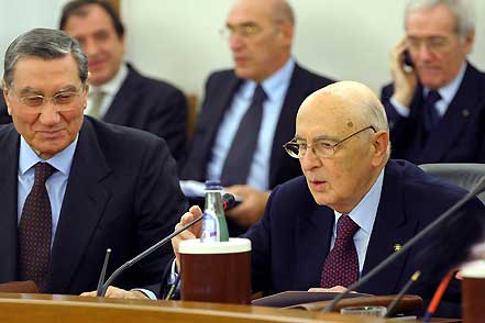 Il Presidente Giorgio Napolitano con il Vice Presidente del CSM, Nicola Mancino in occasione della odierna seduta del Consiglio
