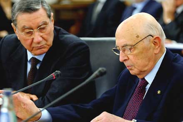 Il Presidente Giorgio Napolitano con il Vice Presidente del CSM Nicola Mancino, durante il suo intervento