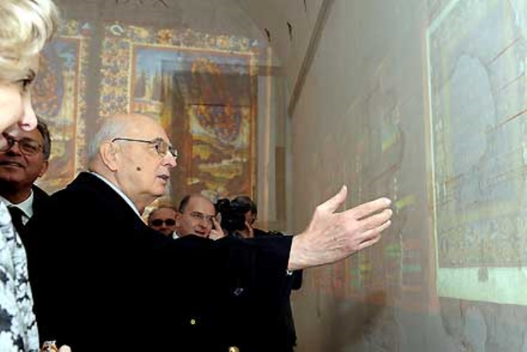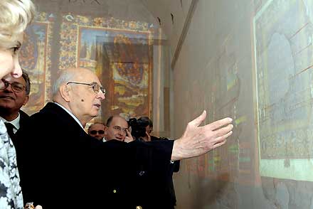 Il Presidente Giorgio Napolitano durante la visita all'Esposizione virtuale multivisione ad Urbino
