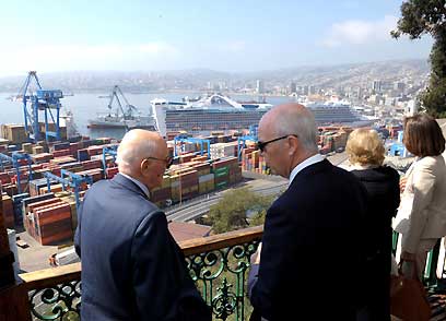 Il Presidente Giorgo Napolitano, accompagnato dall'Ambasciatore Paolo Gasardi, durante la visita al Porto.