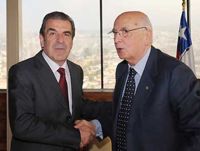 Il Presidente Giorgio Napolitano con l'ex Presidente Frei, nella sede del Congresso Nazionale.