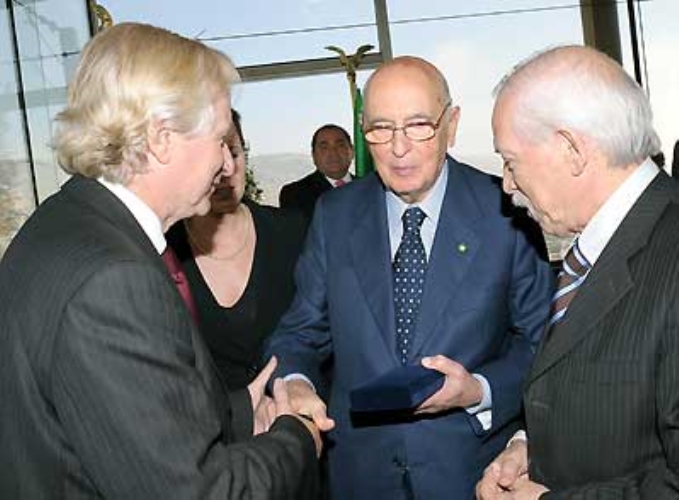 Il Presidente Giorgio Napolitano con i Presidenti di Camera e Senato Adolfo Zaldivar Larrain e Juan Bustos Ramirez, durante la colazione nella sede del Congresso Nazionale.