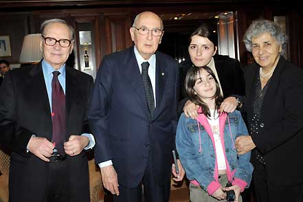 Il Presidente Giorgio Napolitano, posa per la foto, con Ennio Morricone, e la sua famiglia
