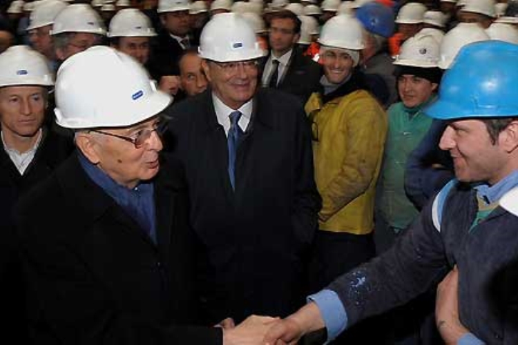 Il Presidente Giorgio Napolitano tra gli operai della Fincantieri