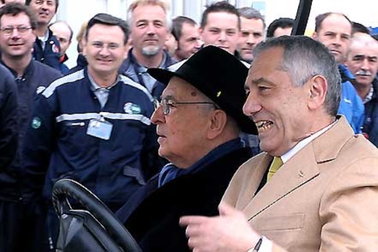 Il Presidente Giorgio Napolitano durante la visita agli stabilimenti della Danieli S.p.A. accompagnato dal Presidente-Amministratore Delegato Giampietro Benedetti
