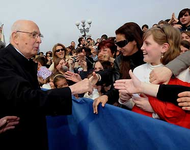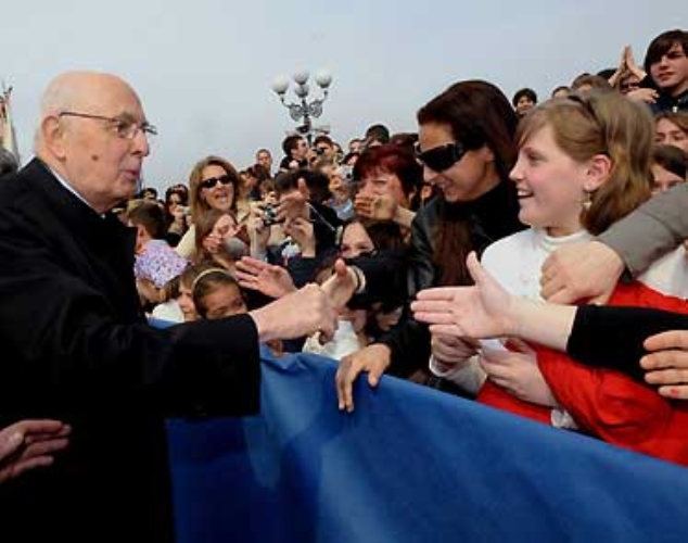 Il Presidente Giorgio Napolitano al termine della cerimonia di celebrazione dell'85° anniversario della fondazione dell'Aeronautica Militare.