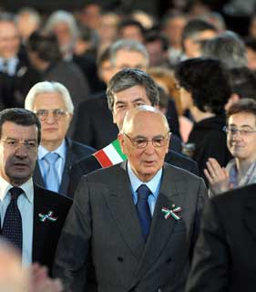 Il Presidente Giorgio Napolitano al suo arrivo a Palazzo Veccchio.