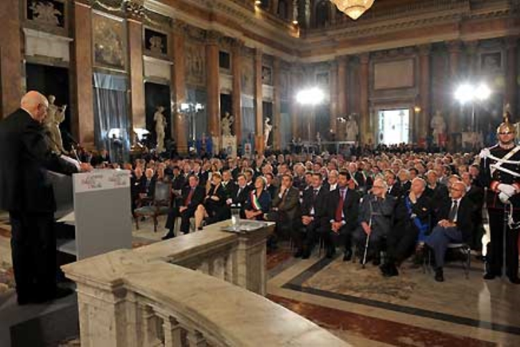 Il Presidente Giorgio Napolitano durante il suo intervento a Palazzo Ducale