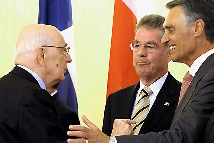 Il Presidente Giorgio Napolitano con Heinz Ficher, Presidente Federale d'Austria e Cavaco Silva, Presidente della Repubblica del Portogallo in occasione dell'incontro informale multilaterale dei Capi di Stato a Grazer Burg