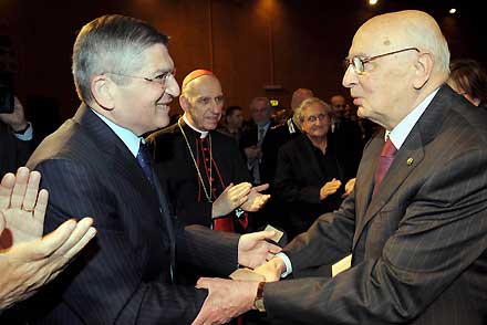 Il Presidente Giorgio Napolitano con l'Ambasciatore dello Stato d'Israele in Italia, Gideon Meir e l'Arcivescovo Severino Poletto, all'inaugurazione della XXI edizione della Fiera del Libro