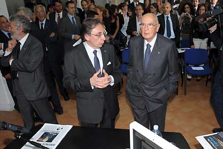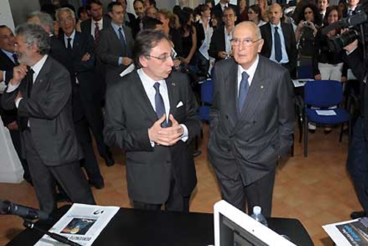 Il Presidente Giorgio Napolitano nell'Aula della Scuola di Giornalismo intitolata a Giancarlo Siani