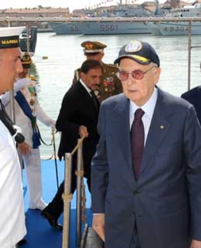 Il Presidente Giorgio Napolitano, accompagnato dal Ministro della Difesa Ignazio La Russa all'arrivo all'Arsenale per la celebrazione della Festa della Marina