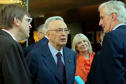 Il Presidente Giorgio Napolitano si intrattiene con alcuni Parlamentari Europei in occasione della seconda edizione degli Stati Generali dell'Europa