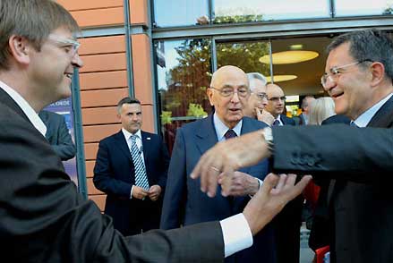 Il Presidente Giorgio Napolitano tra Romano Prodi e Guy Verhofstadt in occasione della seconda edizione degli Stati Generali dell'Europa