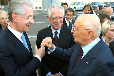 Il Presidente Giorgio Napolitano con Mario Monti e Tommaso Padoa Schioppa in occasione della seconda edizione degli Stati Generali dell'Europa