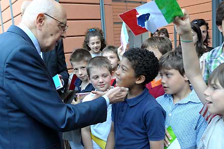 Il Presidente Giorgio Napolitano con un gruppo di scolari della sezione italiana della Scuola internazionale di Lione in occasione della seconda edizione degli Stati Generali dell'Europa