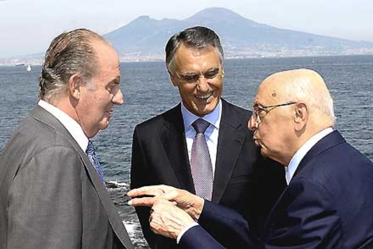 Il Presidente Giorgio Napolitano con il Re di Spagna Juan Carlos ed il Presidente della Repubblica del Portogallo Aníbal Cavaco Silva a Villa Rosebery in occasione del 4° Simposio Cotec Europa