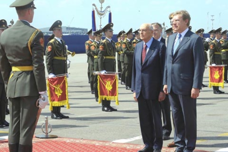 Il Presidente Giorgio Napolitano riceve gli onori militari al suo arrivo a Mosca in occasione della visita di Stato nella Federazione Russa