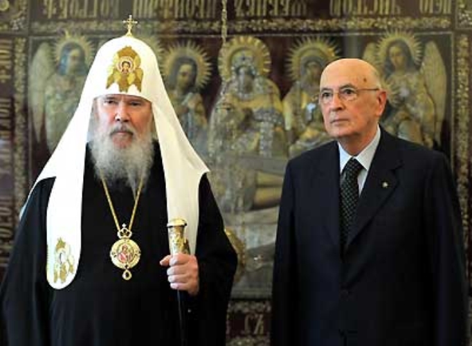 Il Presidente Giorgio Napolitano con il Patriarca Alessio II.