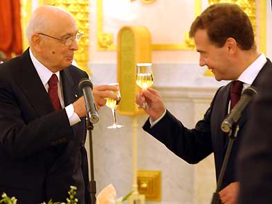 Il Presidente Giorgio Napolitano ed il Presidente della Federazione Russa Medvedev.