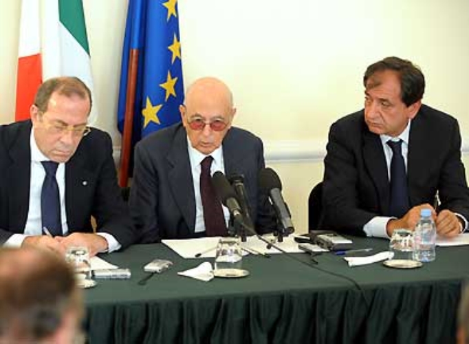 Il Presidente Giorgio Naplitano durante l'incontro con la stampa, traccia un consuntivo del suo viaggio di tre giorni in Russia.