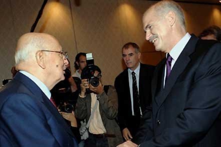 Il Presidente Giorgio Napolitano con il leader dell'Opposizione, George Papandreou